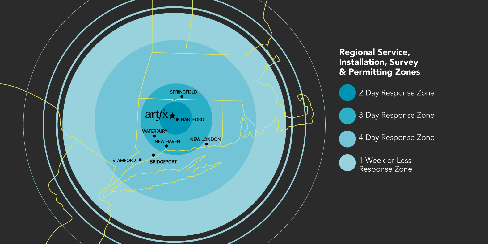 ARTfx services the entire United States and beyond. Our immediate service area shown below, is tended to directly by ARTfx’ service and installation staff. We manage areas beyond with our network of long-term, expert affiliates. For service, installation, survey and permitting information, please contact us – salesteam@artfxsigns.com.